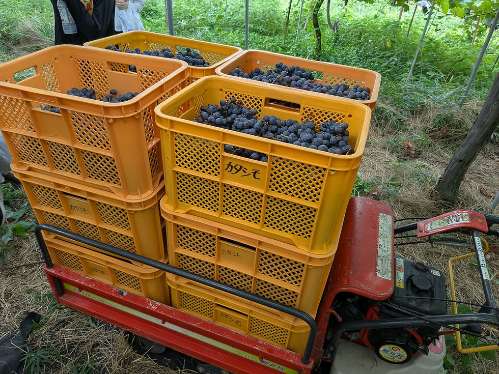 当日は、ぶどう畑での収穫のお手伝いに始まり、午後は自然と戦いながら思うようにいかないワイナリー経営のお話をヒントに、日々の業務やチームワーク強化のノウハウを勉強させていただけた、貴重な機会となりました。